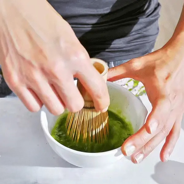 1. کاسه ماچا (چاوان) را با آب گرم کمی گرم کنید.