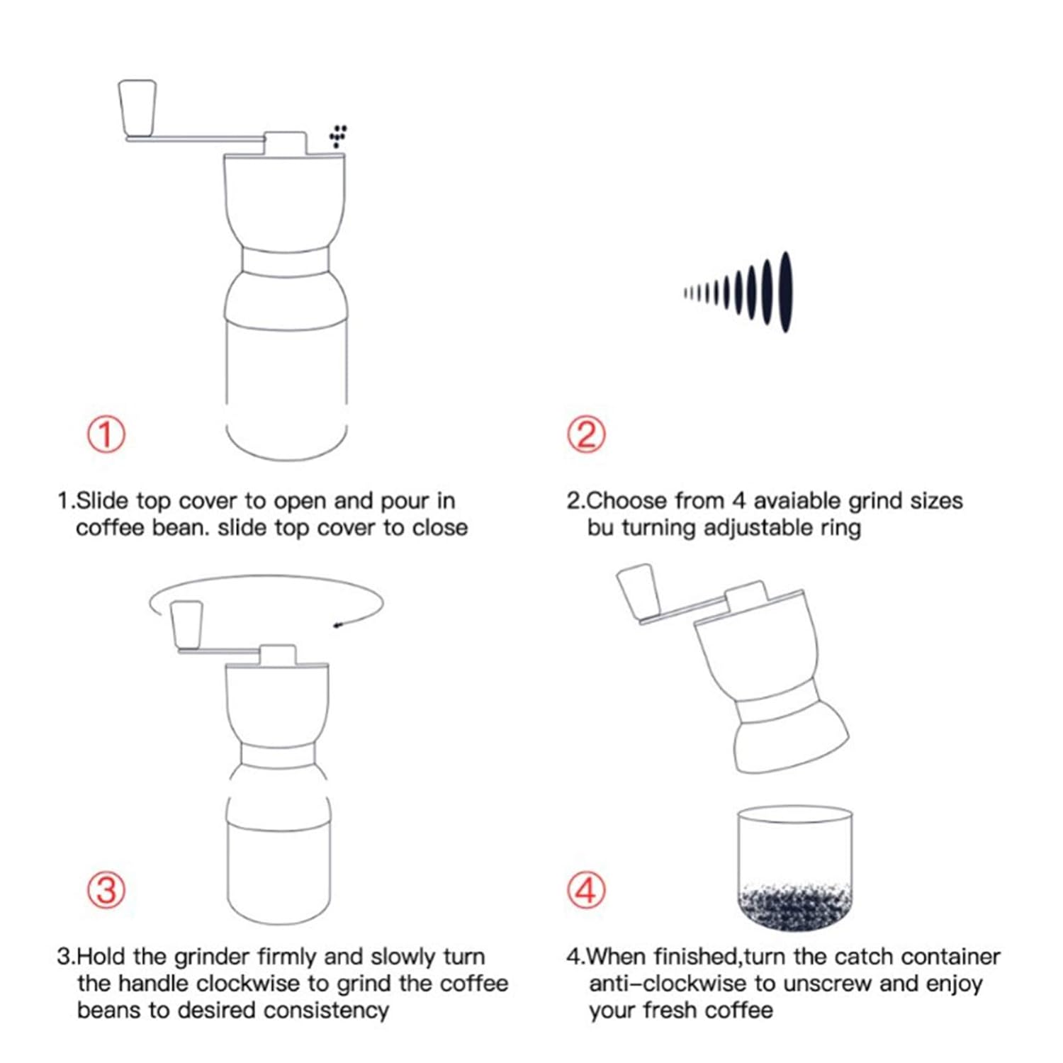 به کمک پیچ تنظیم روی بدنه، میتوانید درجه آسیاب را در ۴ سطح مختلف تنظیم کنید — از آسیاب درشت برای فرنچ پرس و کمکس تا آسیاب نرم برای اسپرسو و موکاپات.