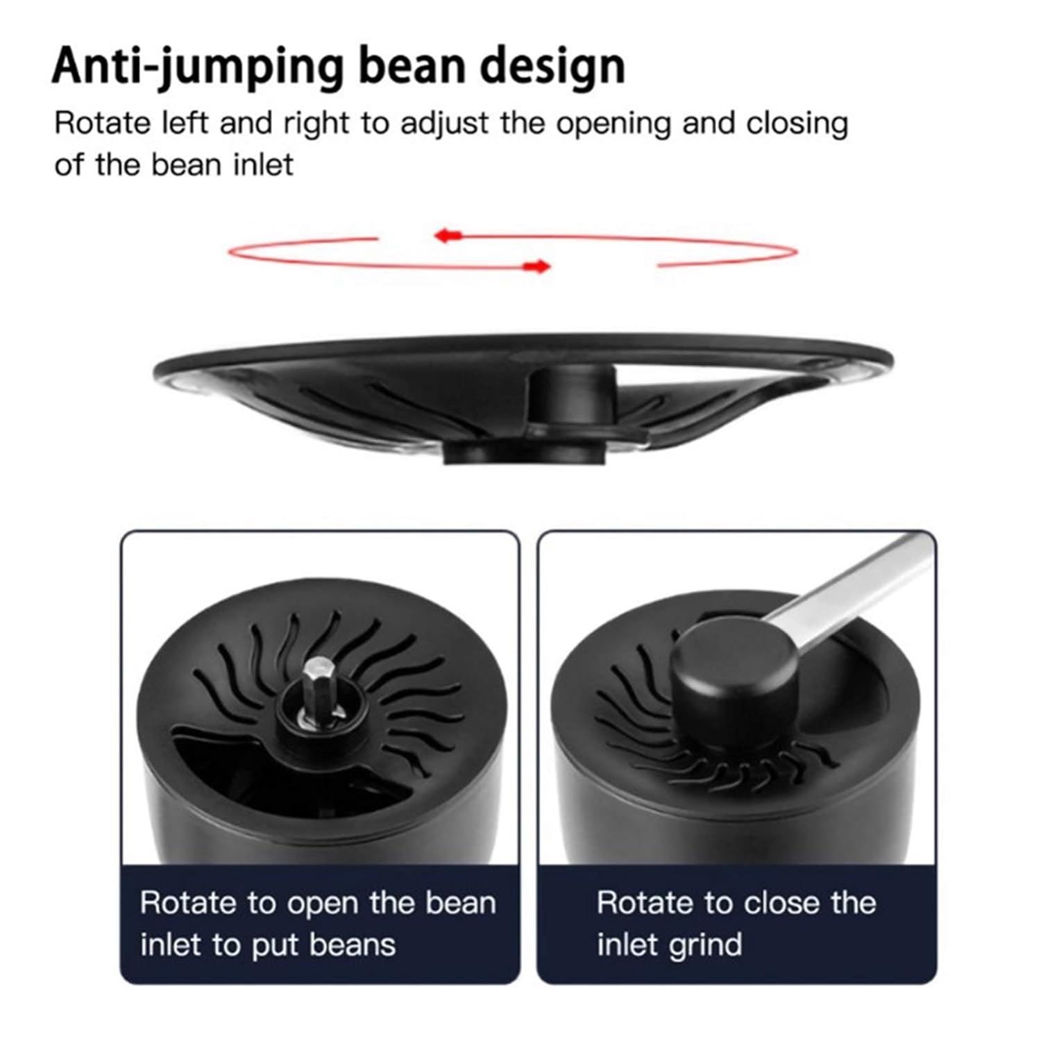 دسته استیل ضدزنگ قابل جداسازی بوده و با حرکت نرم و روان خود، فرآیند آسیاب را بدون فشار اضافی انجام میدهد. مخزن دوگانه (کوچک و بزرگ) امکان ذخیره یا تفکیک پودر قهوه را فراهم کرده و برای مصارف مختلف بسیار کاربردی است.