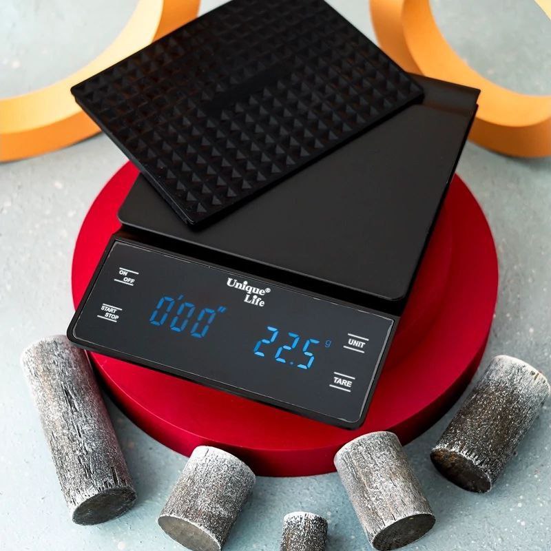 ترازوی دیجیتال تایمر دار Unique Life ترکیبی از دقت، سادگی و زیبایی است. این محصول با طراحی مینیمال و عملکرد دقیق خود، تجربهای حرفهای در دمآوری قهوه را برایتان فراهم میکند. چه باریستای حرفهای باشید، چه در خانه عاشق دمآوری قهوه باشید، این ترازو به شما کمک میکند هر بار قهوهای باکیفیت و یکدست تهیه کنید.